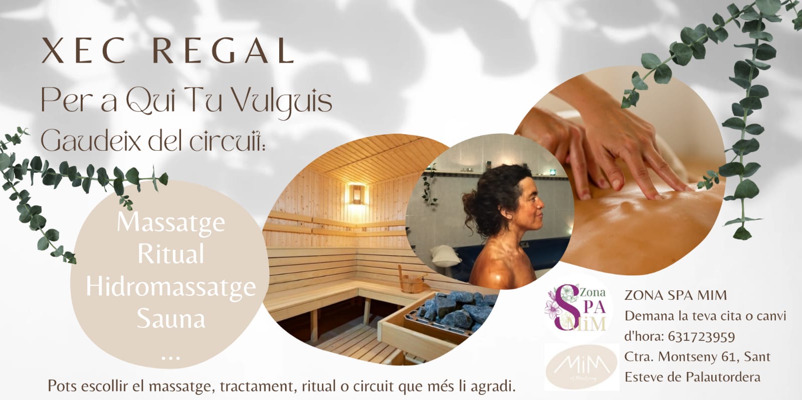 Amb el xec regal pots escollir entre els diferents serveis i fes el millor regal al teu ésser estimat. Massatges, Rituals, Reiki, Sauna.